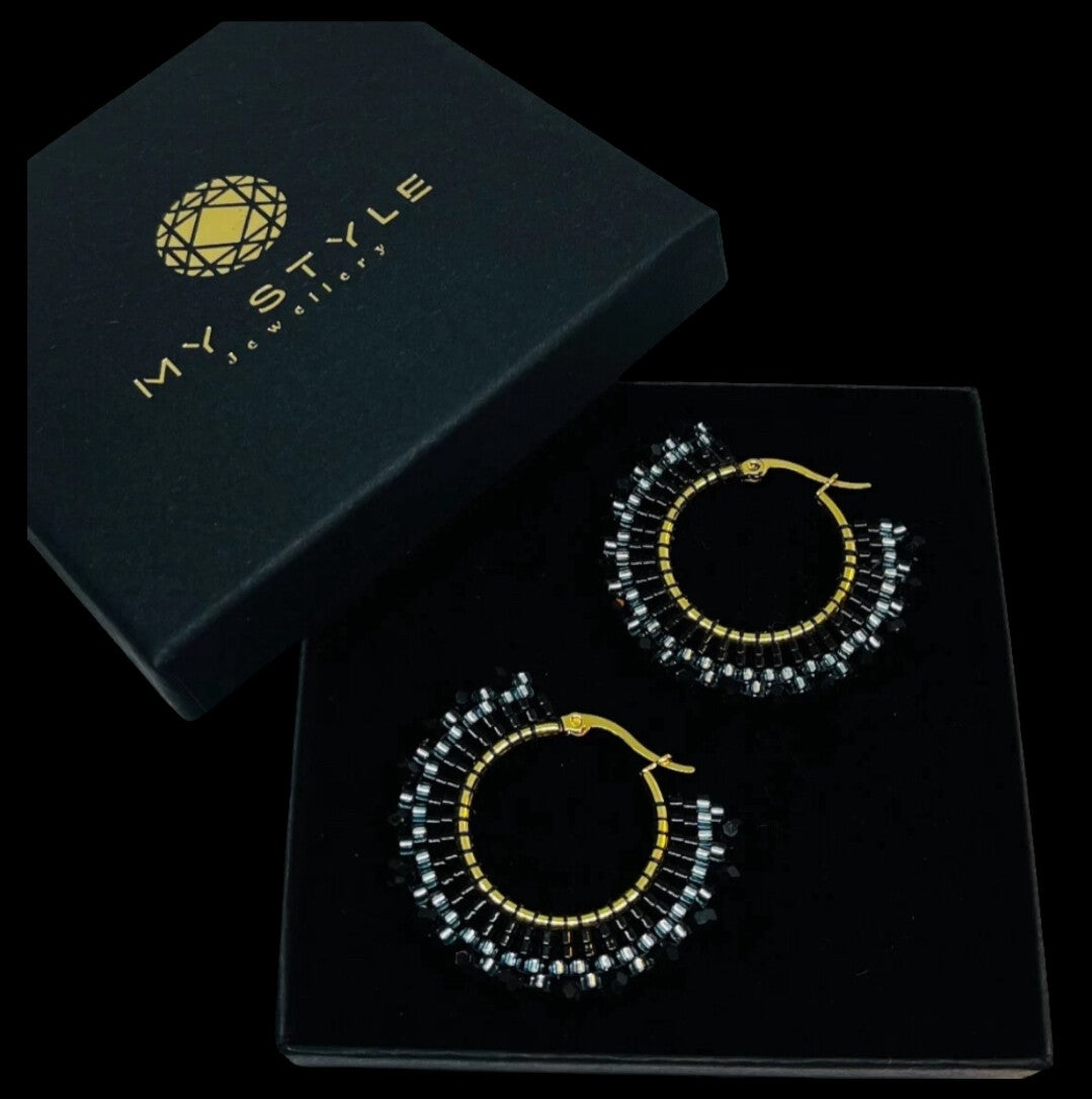 Statement earrings Miyuki blue black