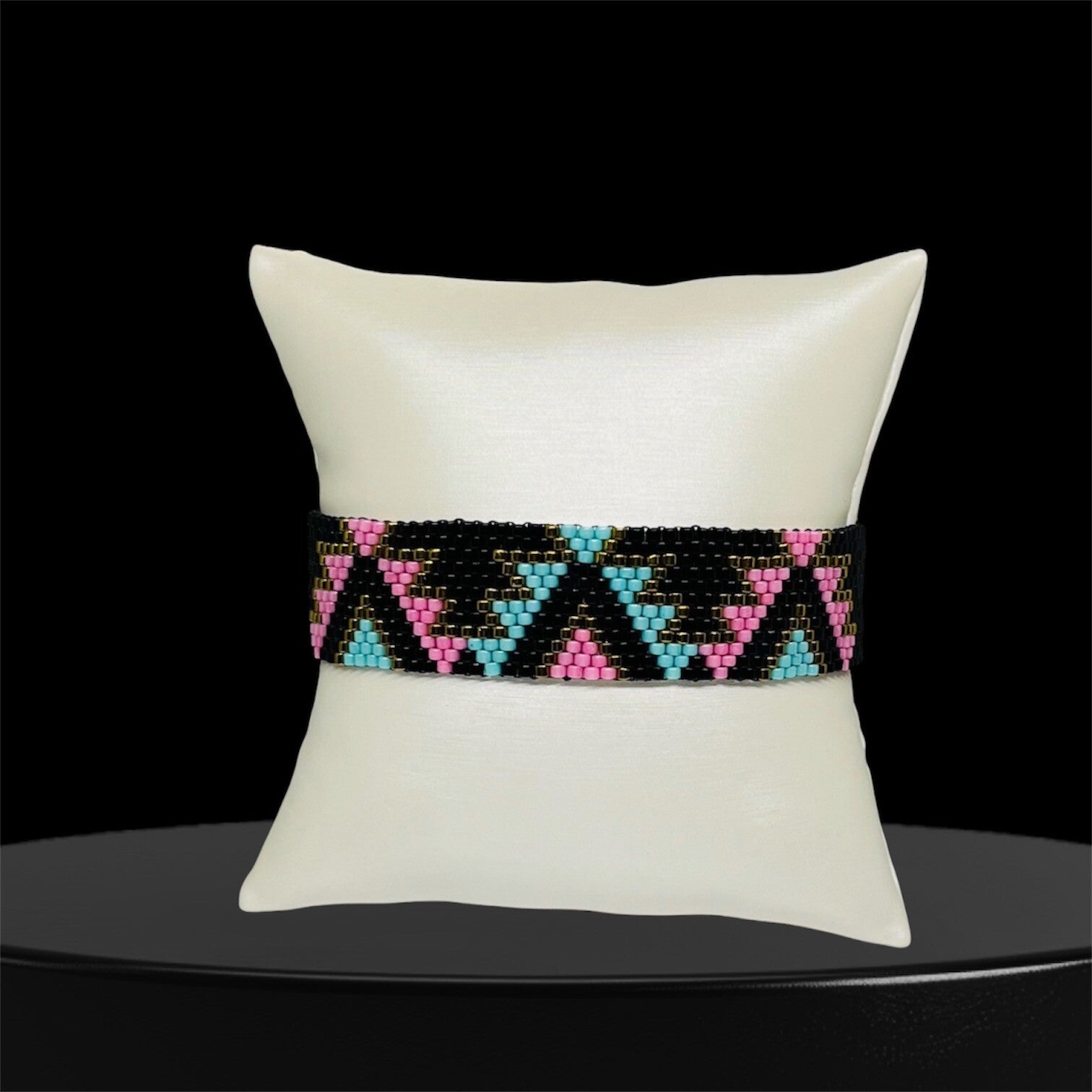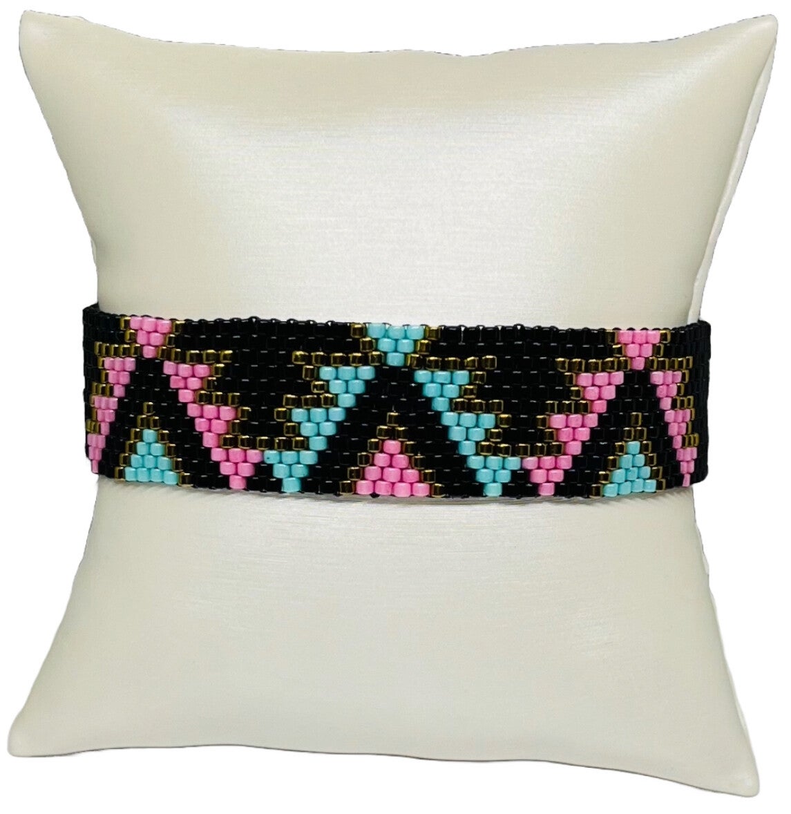 Kralenarmband Miyuki Navajo turquoise roze zwart goud