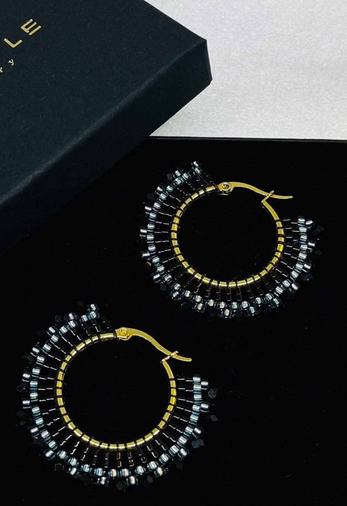 Statement oorbellen creool zwart - blauw - goud