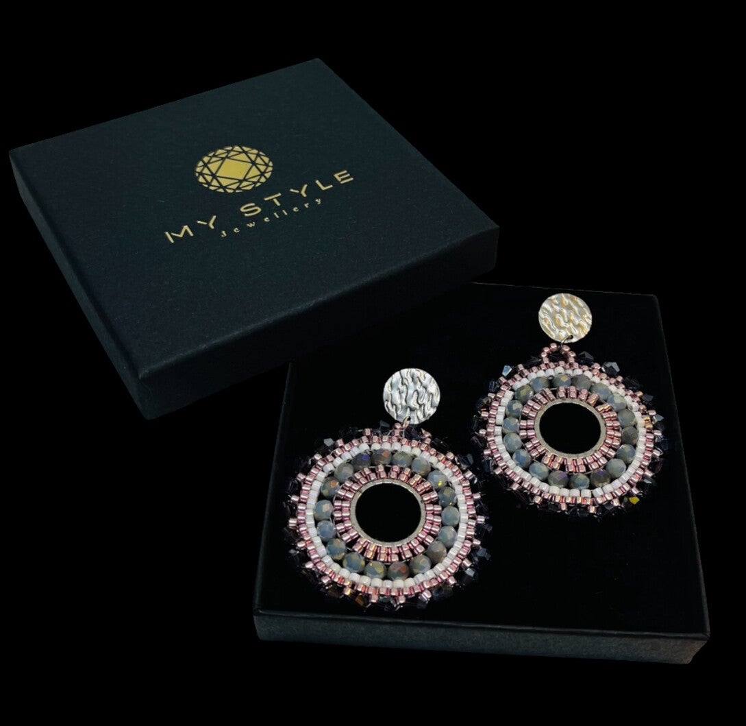 Statement oorbellen circular lila roze B2B008 met gratis luxe cadeau verpakking naar keuze