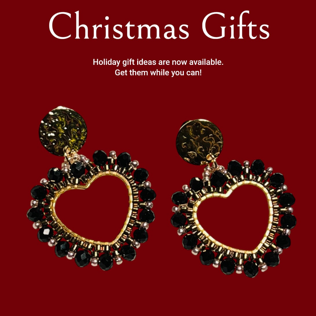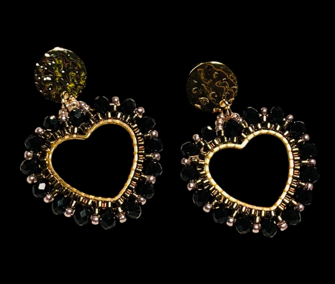 Statement earrings lovely heart black gold