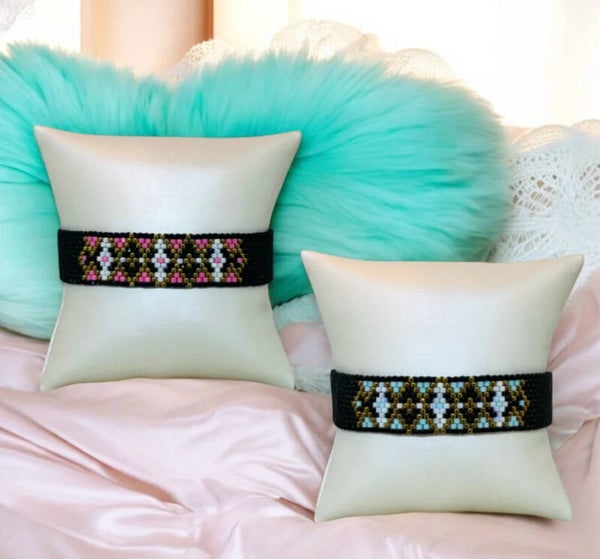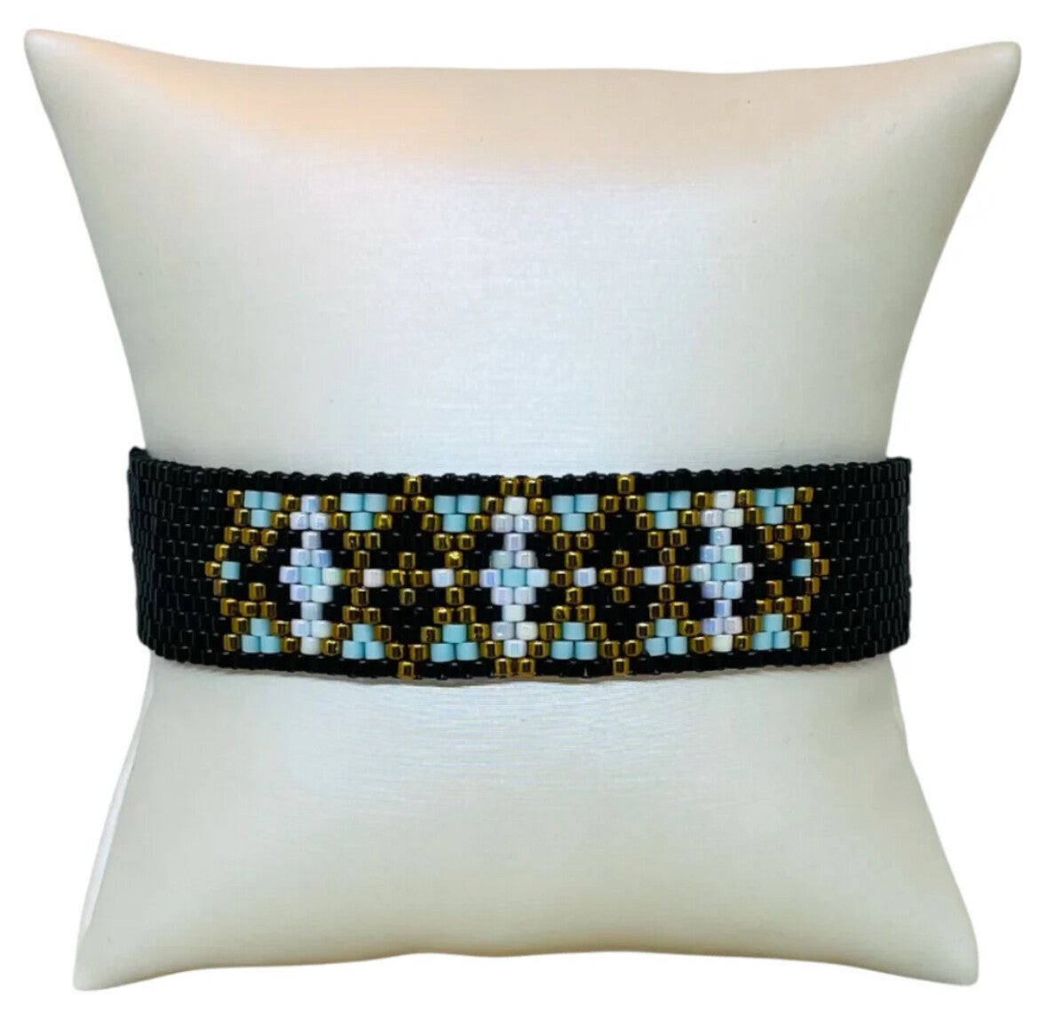 Miyuki geweven kralenarmband met stijlvol design, duurzaam afgewerkt met zwarte agaat natuursteen kralen.