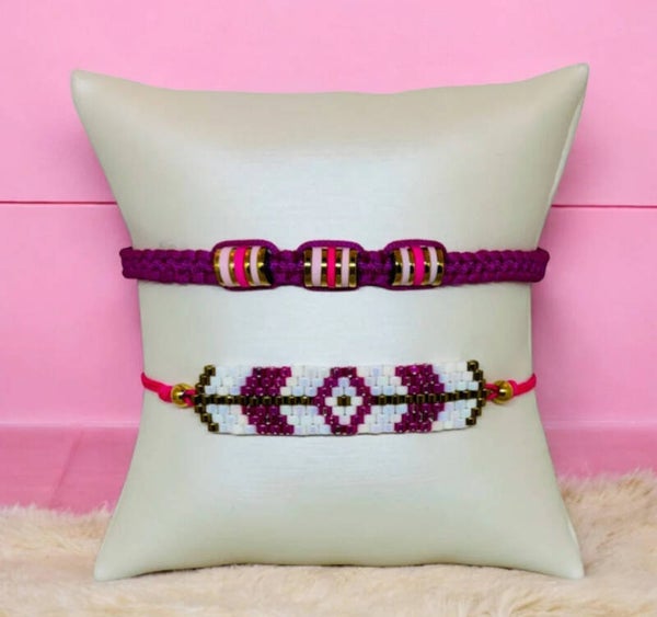 Armbandenset Boho vibes meerkleurig roze 2 delig