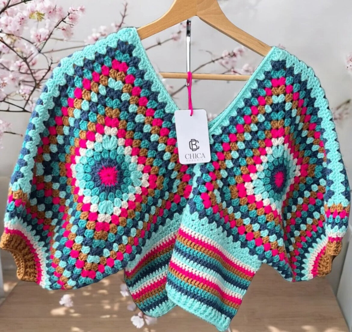 - Stijlvolle handgemaakte top met kleurrijk granny square patroon
