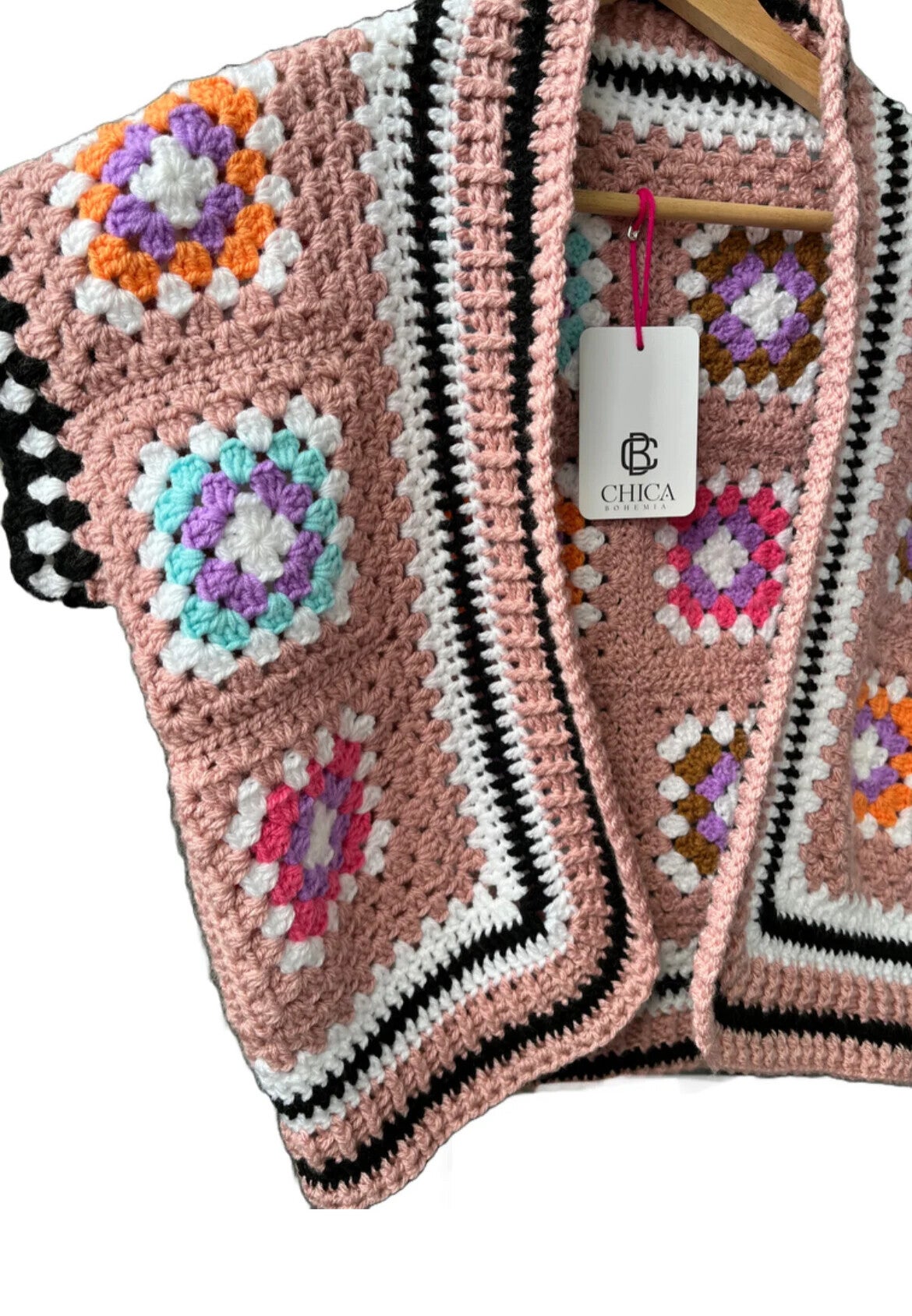 Granny square vest korte mouw meerkleurig roze