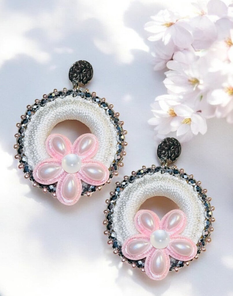 - Materiaal: Polypropylene koord, facet glaskralen, rocaille kralen, bloem applicatie, imitatie parels, zilver roestvrij staal