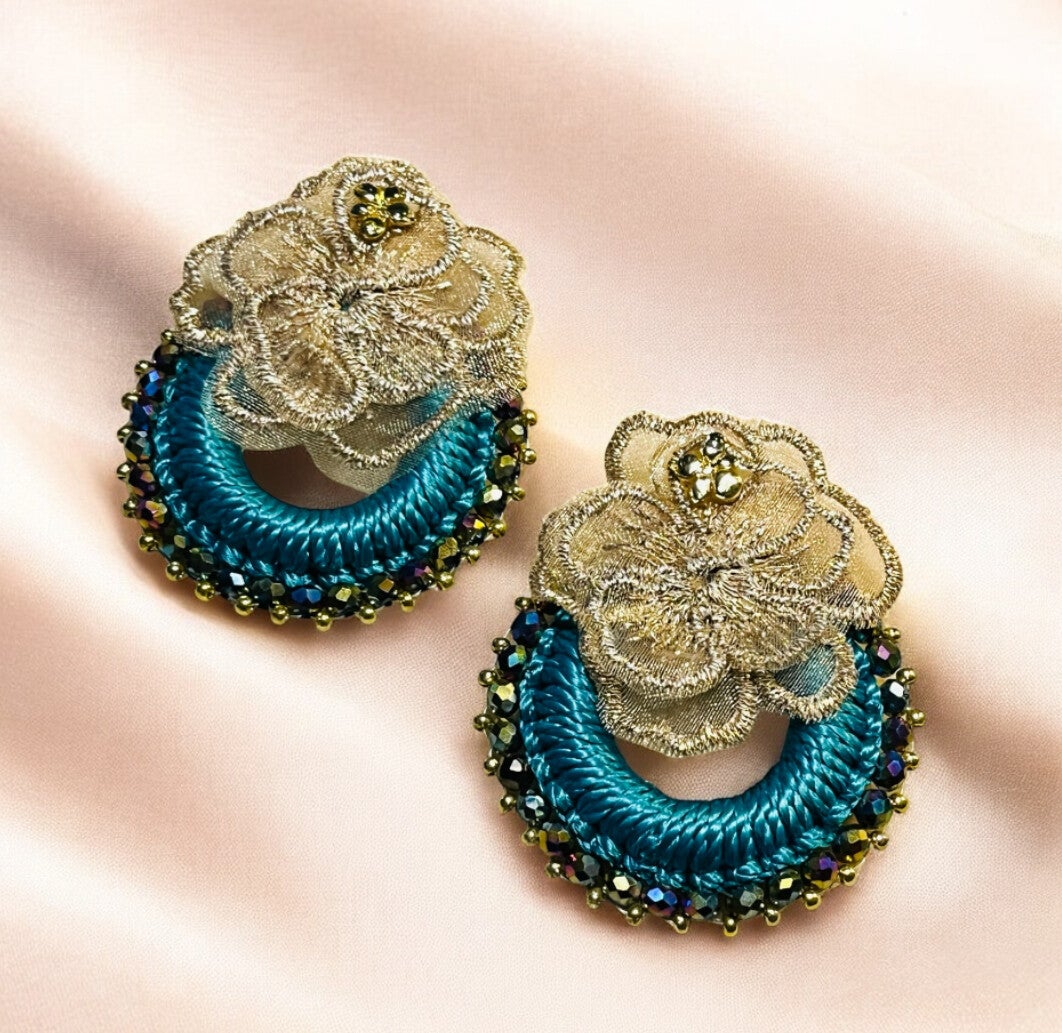 - Materiaal: Polypropylene koord, facet glaskralen, rocaille kralen, bloem applicatie, imitatie parels, goud roestvrij staal oorstud