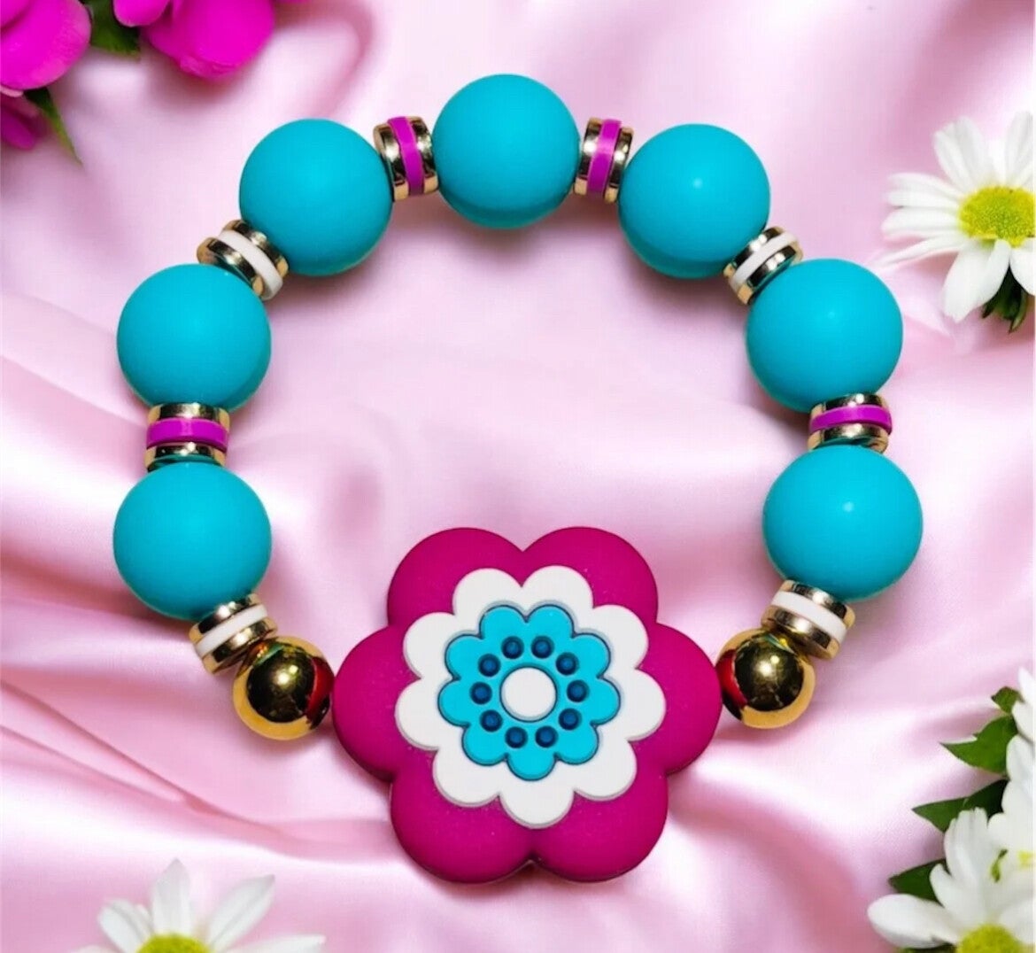 Color Pop kralenarmbandje maken flower met turquoise blauwe siliconen kralen