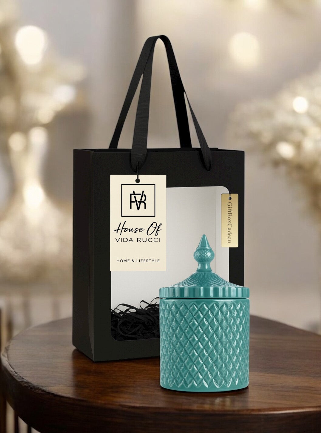 Deze Luxe elegante bewaarpot is een stijlvolle toevoeging aan ieder interieur. De pot heeft een prachtig diamant reliëf en een sierlijke deksel met decoratieve knop. Door de glanzende afwerking krijgt deze schitterende decoratieve pot een luxe uitstraling. Ideaal voor het bewaren van kleine items zoals sieraden, wax melts, theelichtjes, wattenschijfjes, of andere accessoires. De pot is gemaakt van duurzaam epoxy (kunsthars - kunststeen), waardoor de pot stevig is, de kleur mooi behoudt en eenvoudig schoon te maken is.