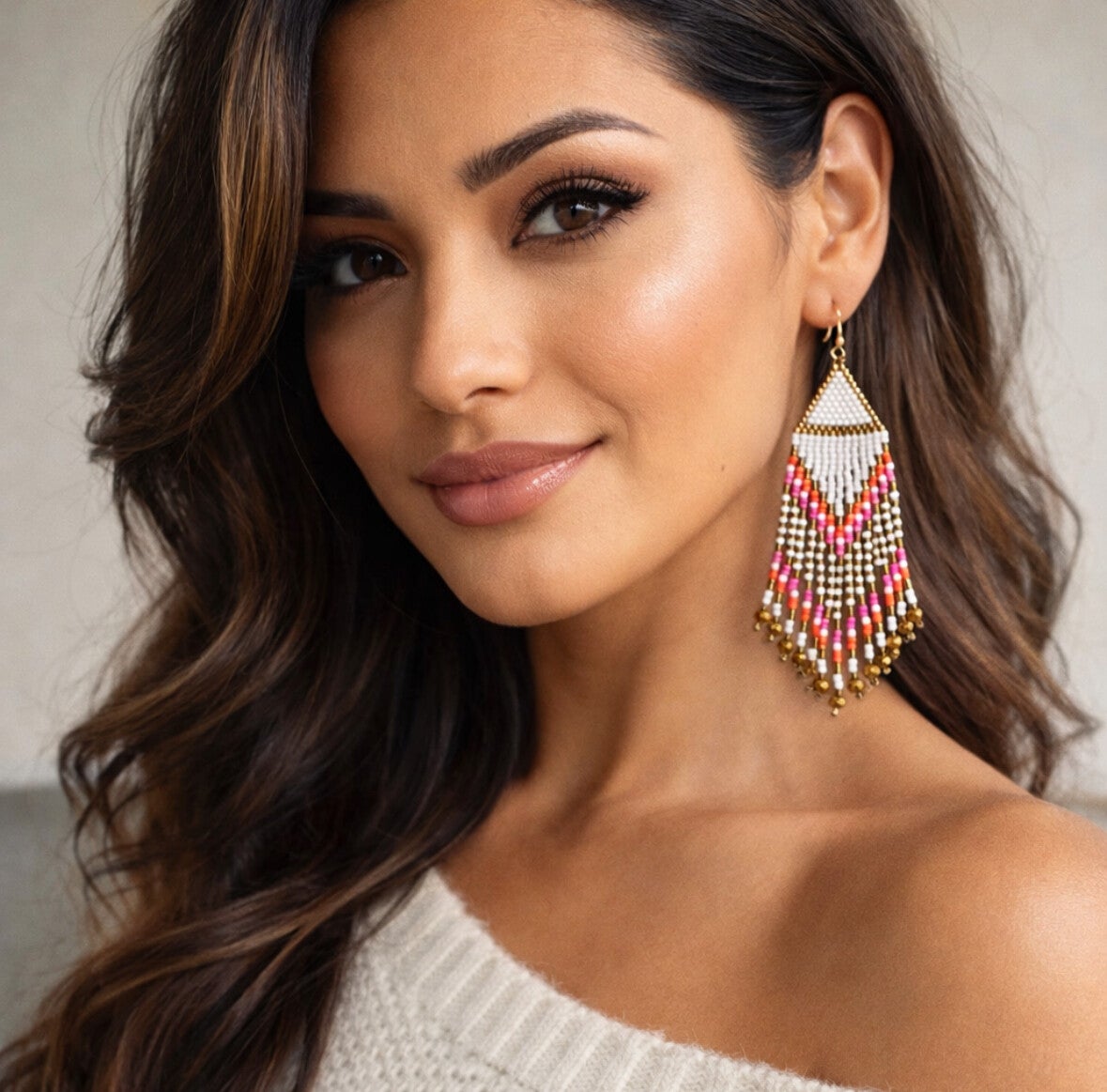 De Ibiza Sunrise franje oorbellen zijn geïnspireerd op de ontspannen bohemian sfeer van Ibiza. De combinatie van wit, goud, roze en oranje geeft ze een warme, zomerse uitstraling. De speelse franjes en het handgemaakte karakter zorgen voor een echte boho look die perfect past bij zonnige dagen, festivals of een avond uit. Een stijlvol statement voor wie houdt van de vrije Ibiza stijl.
