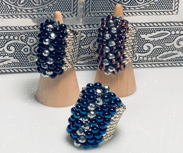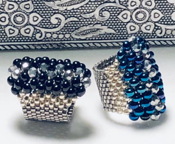 Handmade beaded art glamour ring