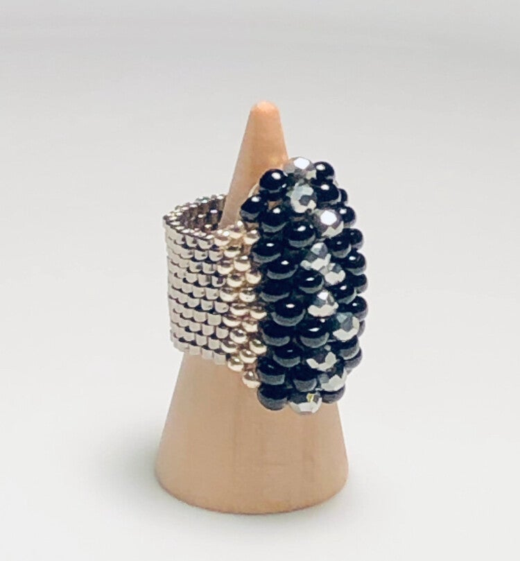 Glamour ring beading art silver / black