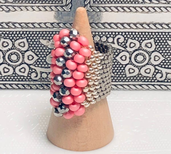 Glamour ring beading art silver / pink